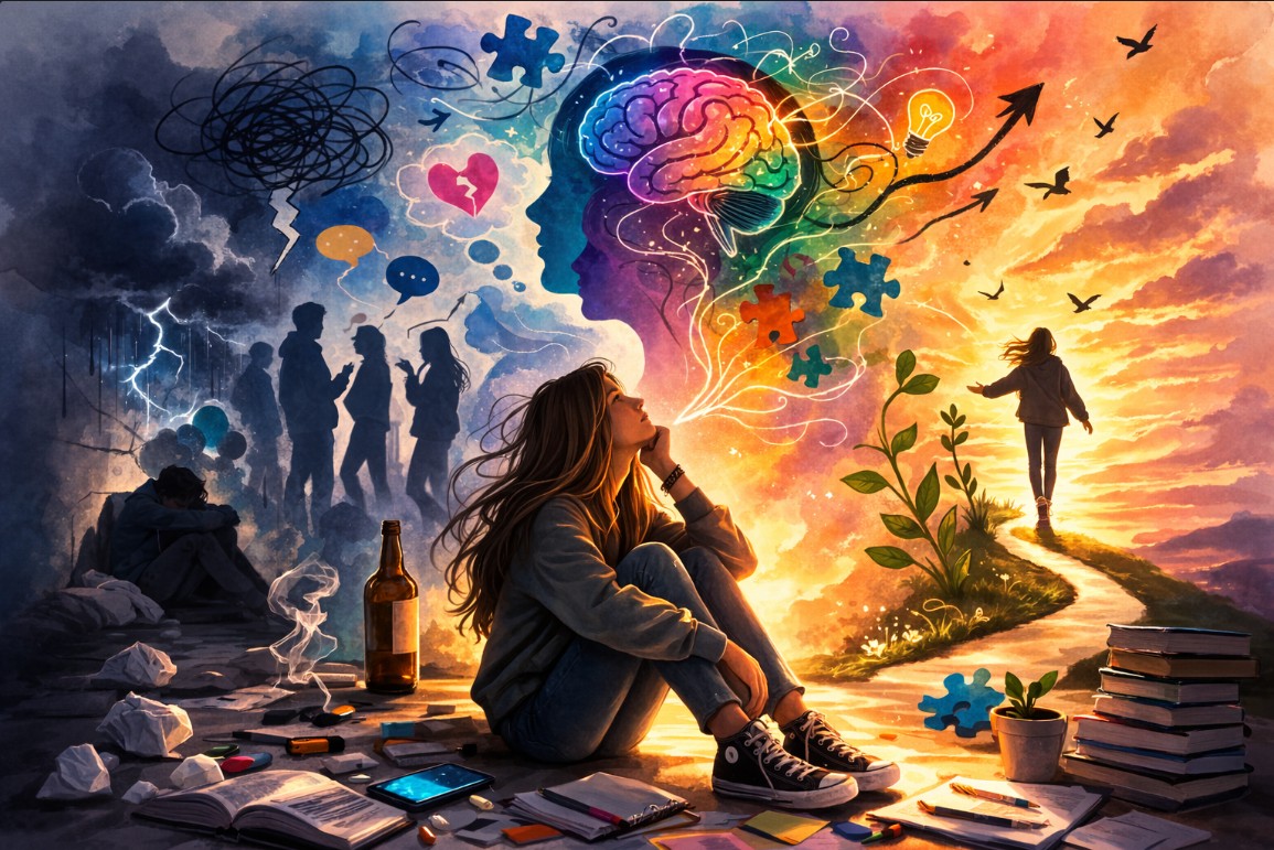 Sin embargo, también pueden surgir situaciones de riesgo como presión académica, influencia de pares, uso excesivo de redes sociales, aislamiento o conductas de riesgo. Los cambios hormonales influyen en el estado de ánimo y el comportamiento, lo que puede generar conflictos o inestabilidad emocional.